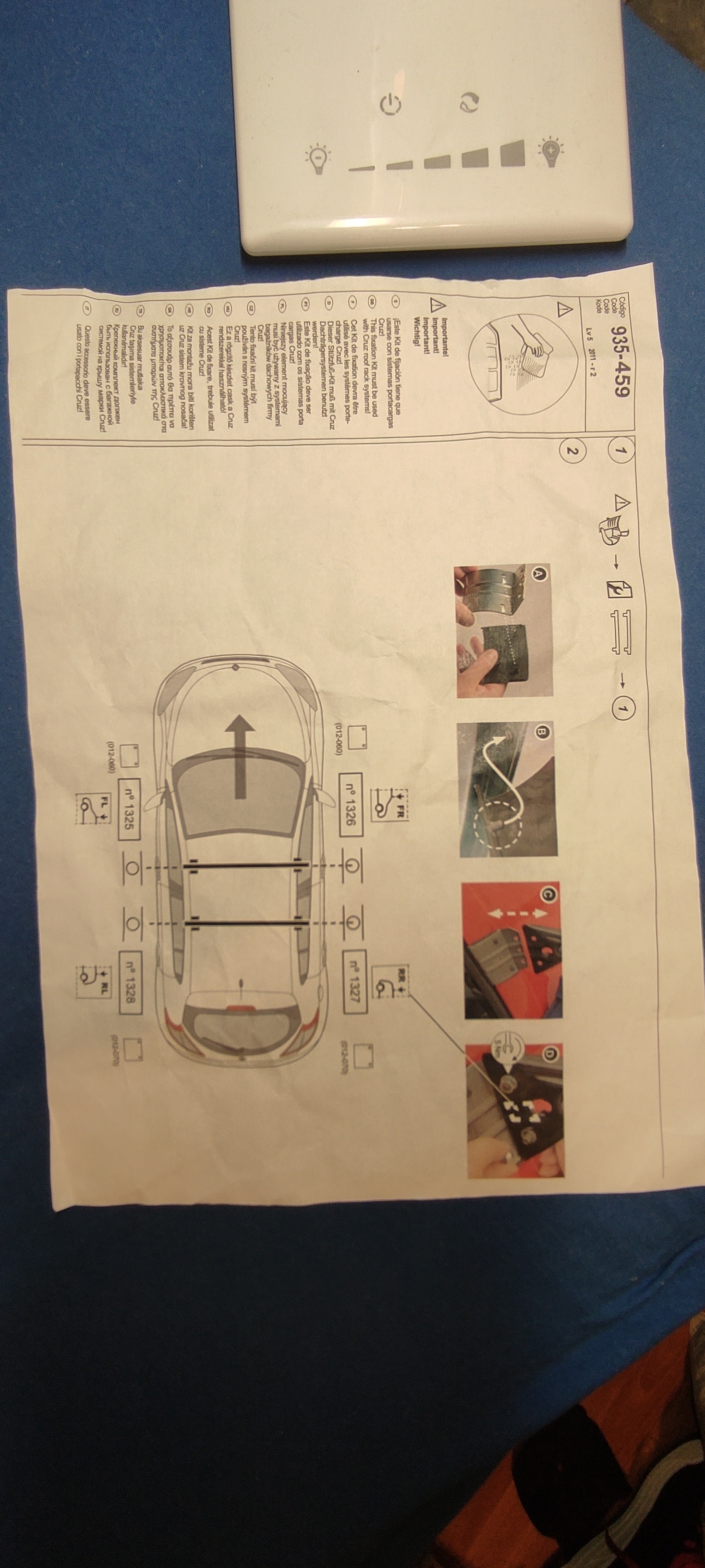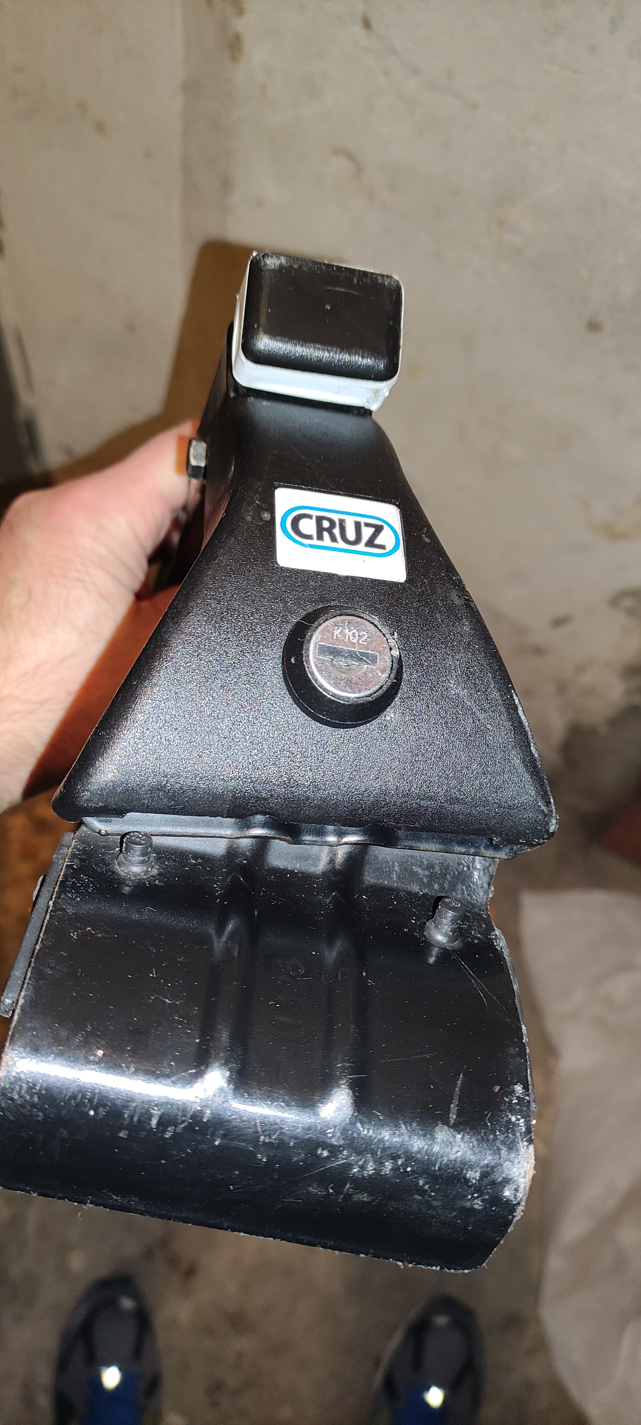 Sprzedam mało używany bagażnik dachowy (belki) firmy CRUZ model 935-459 zamykany na klucz. Bagażnik montuje się bezpośrednio do dachu samochodu za pomocą "łap" w miejscach pokazanych na rysunku (pod uszczelką są otwory w które wchodzą kołki łap, zapobiega to przesuwaniu łap) Bagażnik był zamontowany w Megane 3 rocznik 2010, ale pasuje też do innych modeli bez relingów.