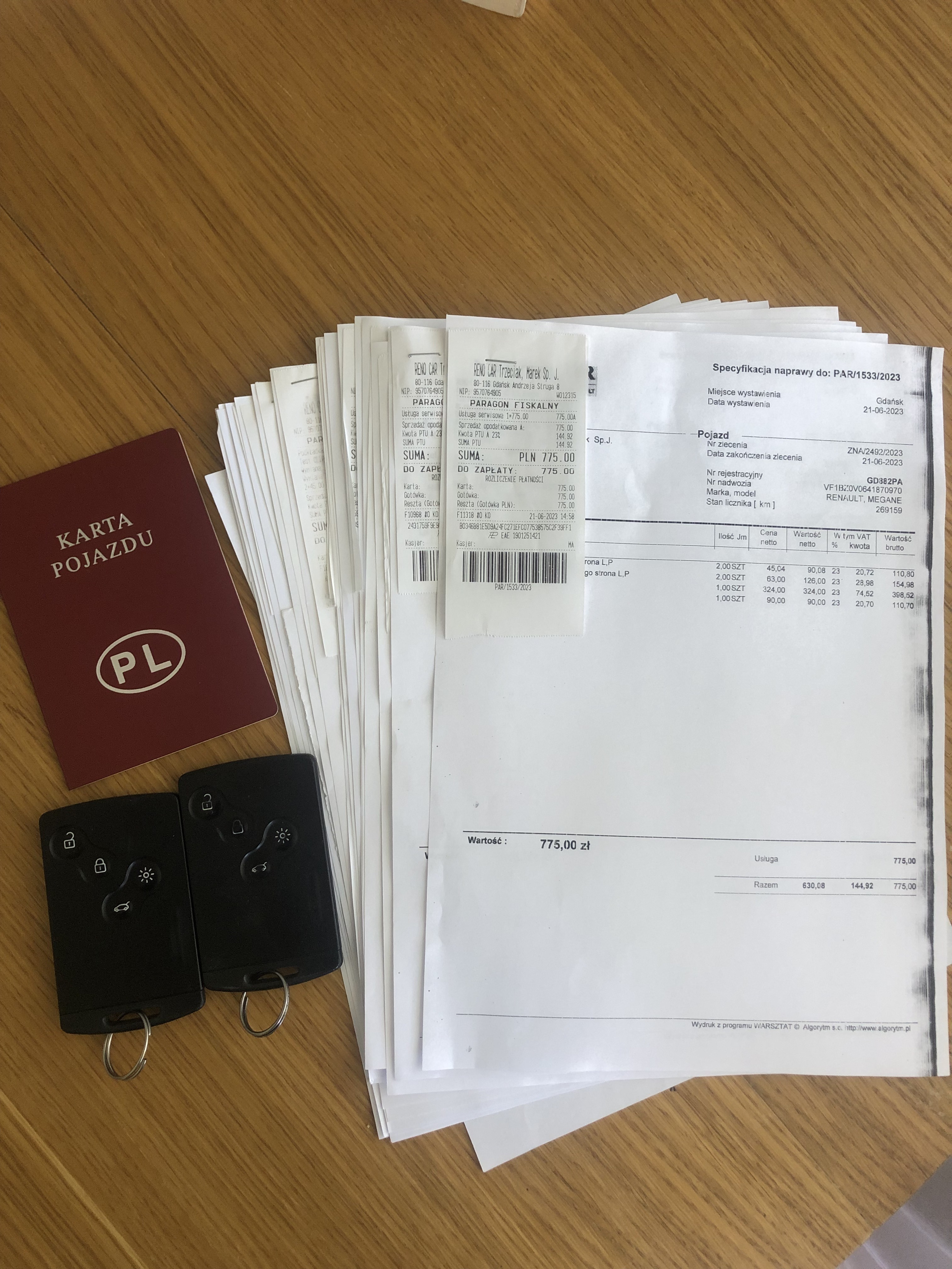 Auto jest serwisowane na bieżąco: oleje, filtry wymiana co 10 tys. km, wymieniony 2x kompletny rozrząd, chłodnica wody, chłodnica klimatyzacji, zawieszenie przód - tył, wahacze, końcówki + drążki kierownicze, tarcze hamulcowe, klocki. Na wszystko posiadam faktury z jednego autoryzowanego serwisu. Przy każdej fakturze wpisany jest aktualny stan licznika samochodu co również można potwierdzić samemu wchodząc na stronę historiapojazdu.gov.pl Wszystkie faktury do obejrzenia, oczywiście faktury zostaną przekazane nowemu właścicielowi pojazdu.
