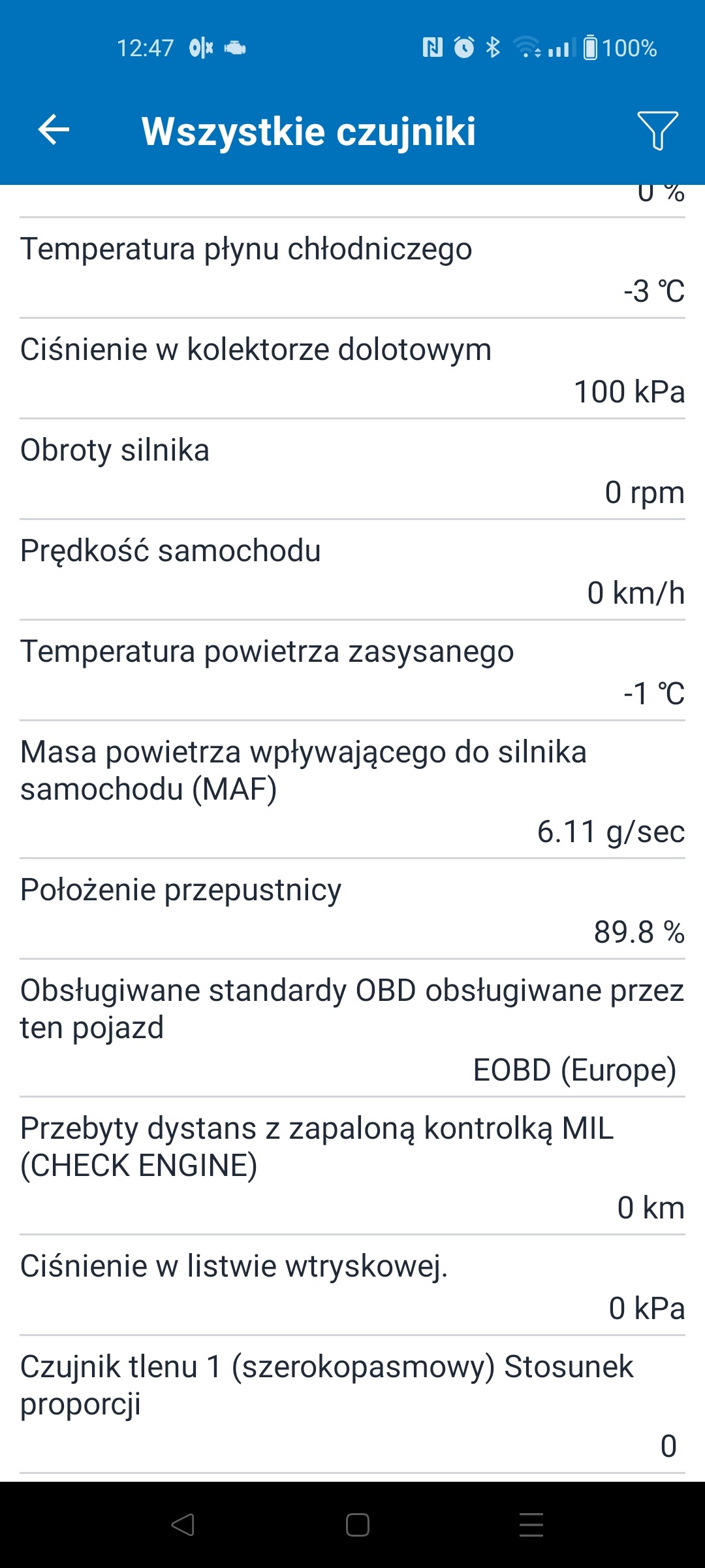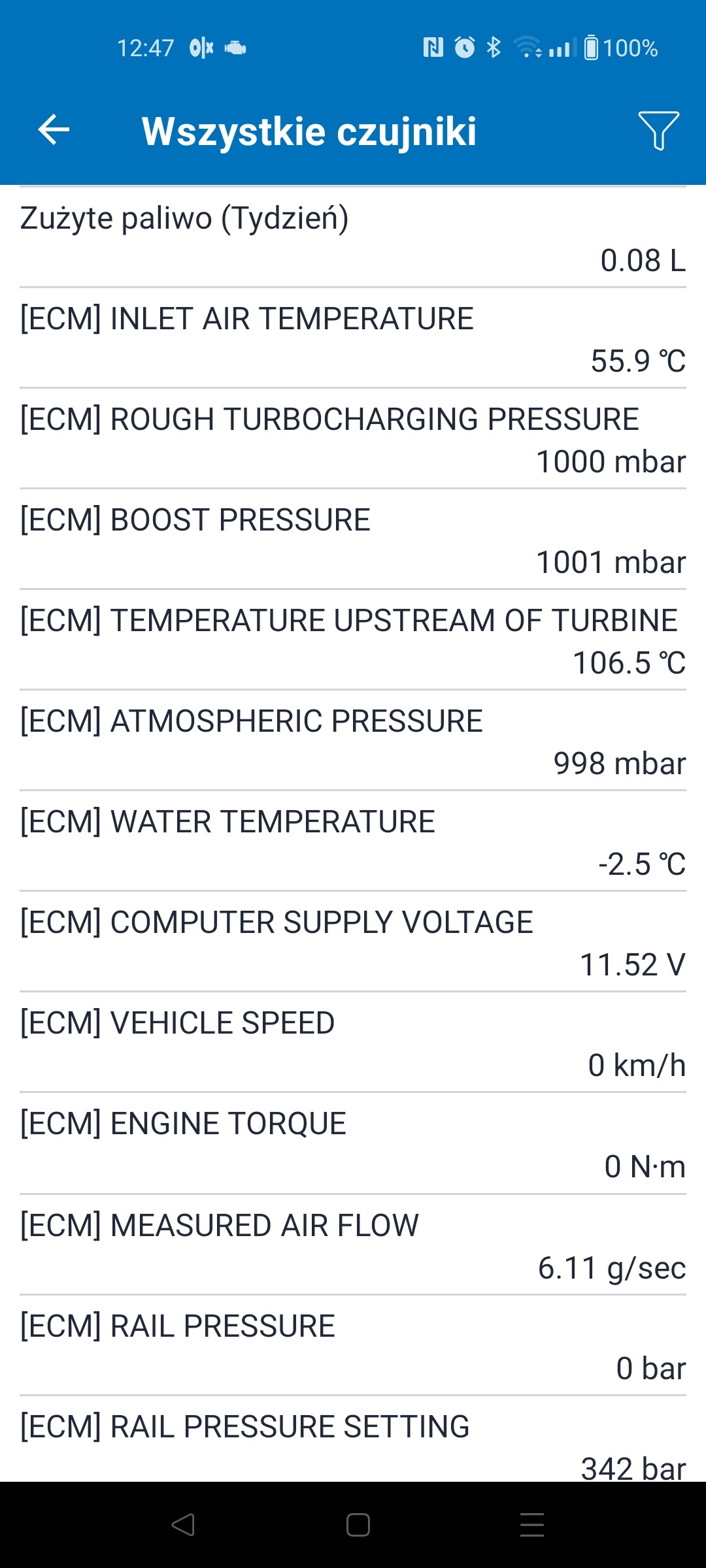 Istotne odczyty temperatur są ok. Serwisówka dla tego układu wtrysku dopuszcza różnicę temperatury między wodą a powietrzem z przepływomierza do 10 stopni.