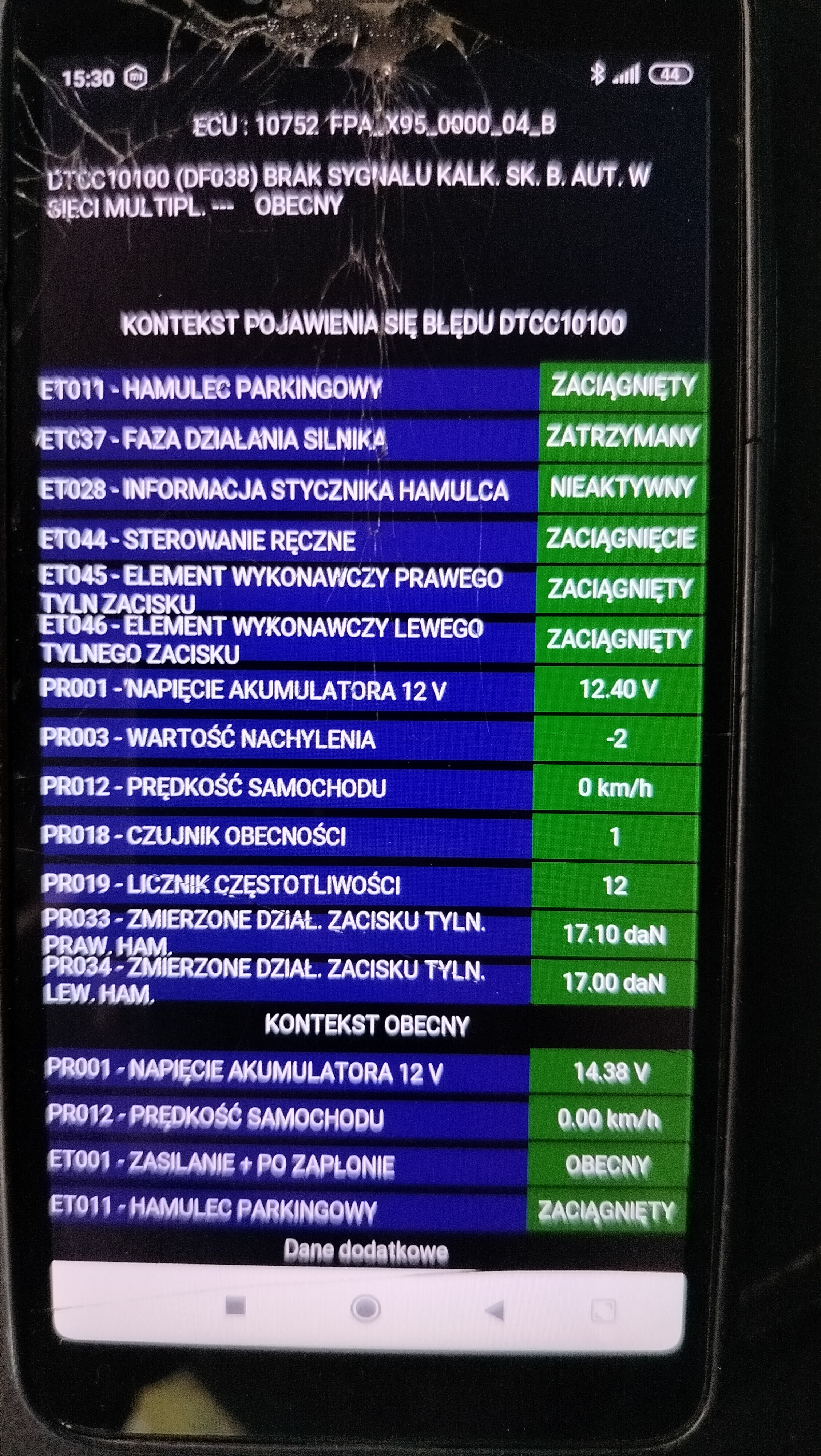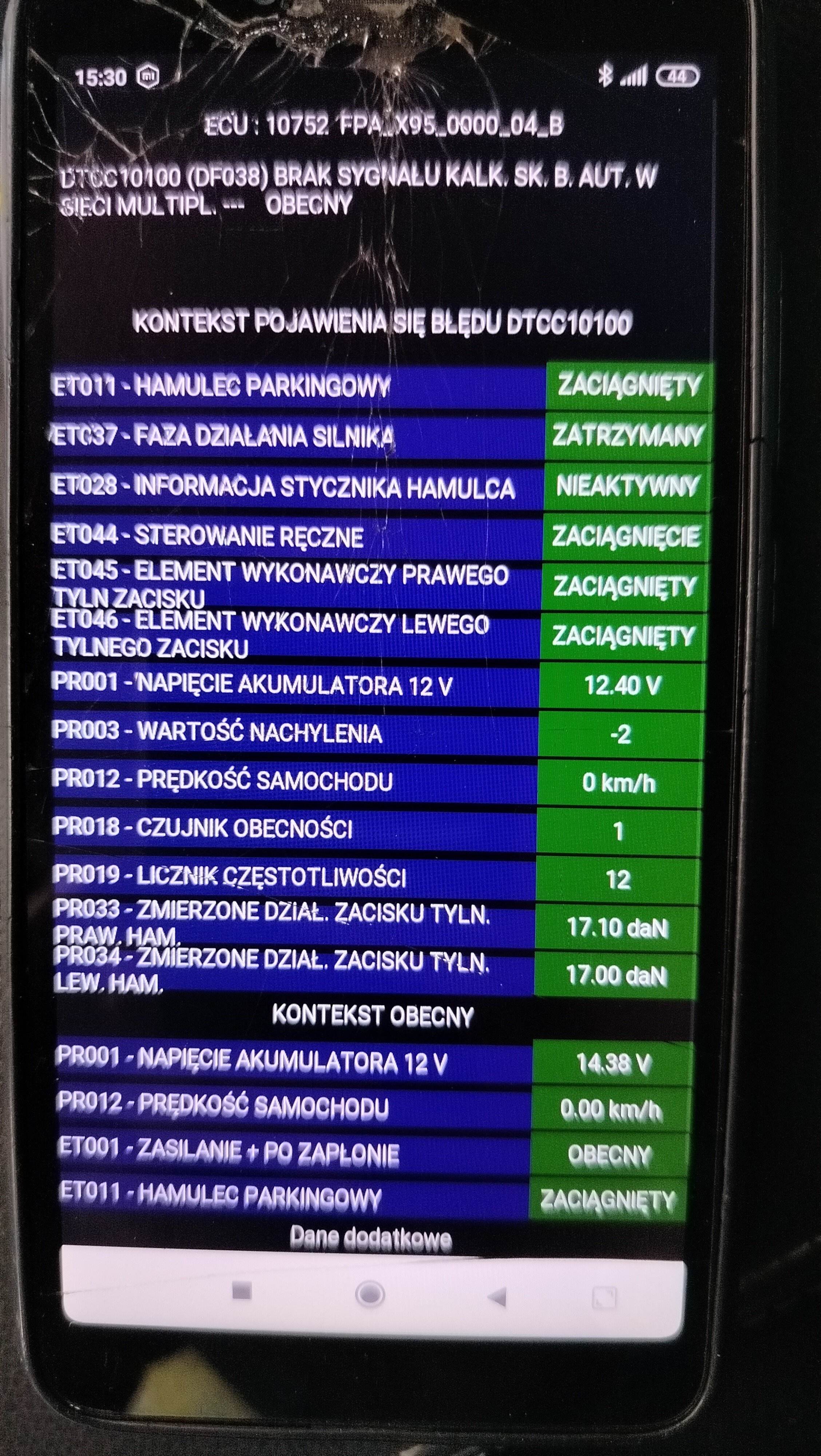 W parametrach hamulca czujnik położenia pedału sprzęgła 102% i nie zmienia sie podczas wciskania sprzęgła. Rozebrałem go ale styki czyste więc nie wiem czemu nie reaguje.IMG20260325153040.thumb.jpg.4279db347e9c4e14369643750eb9a184.jpg